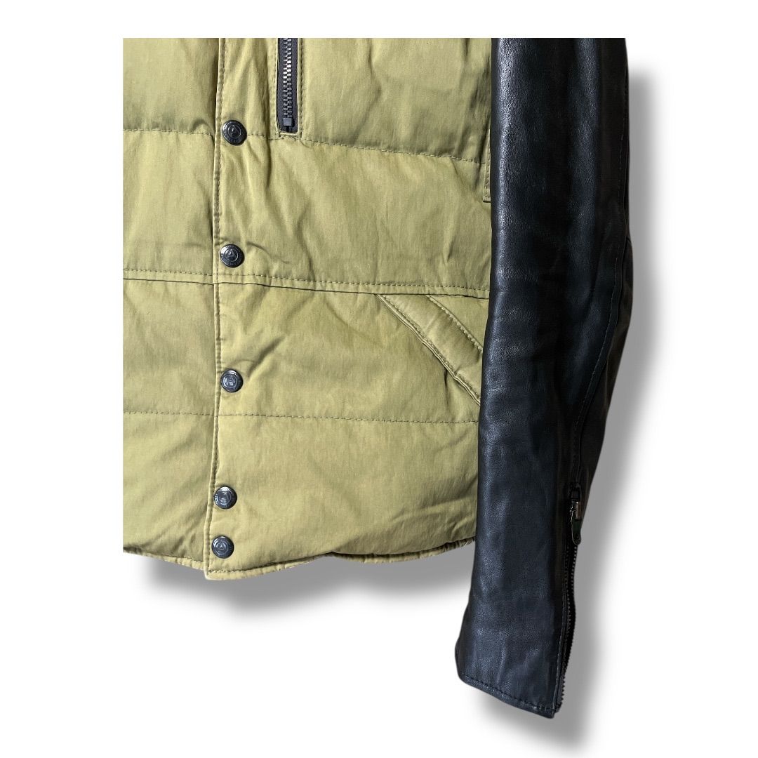 Advantage Cycle アドバンテージサイクル レザースリーブ ダウンジャケット フード革袖取り外し 防寒 アウター 紳士 ジャンパー ベスト メンズ サイズS 冬 カーキ×ブラック 久喜倉庫店 42 No.K815Y ODELLYA_COM